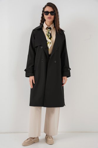 • 5918 Kruvaze Yaka Trençkot Siyah